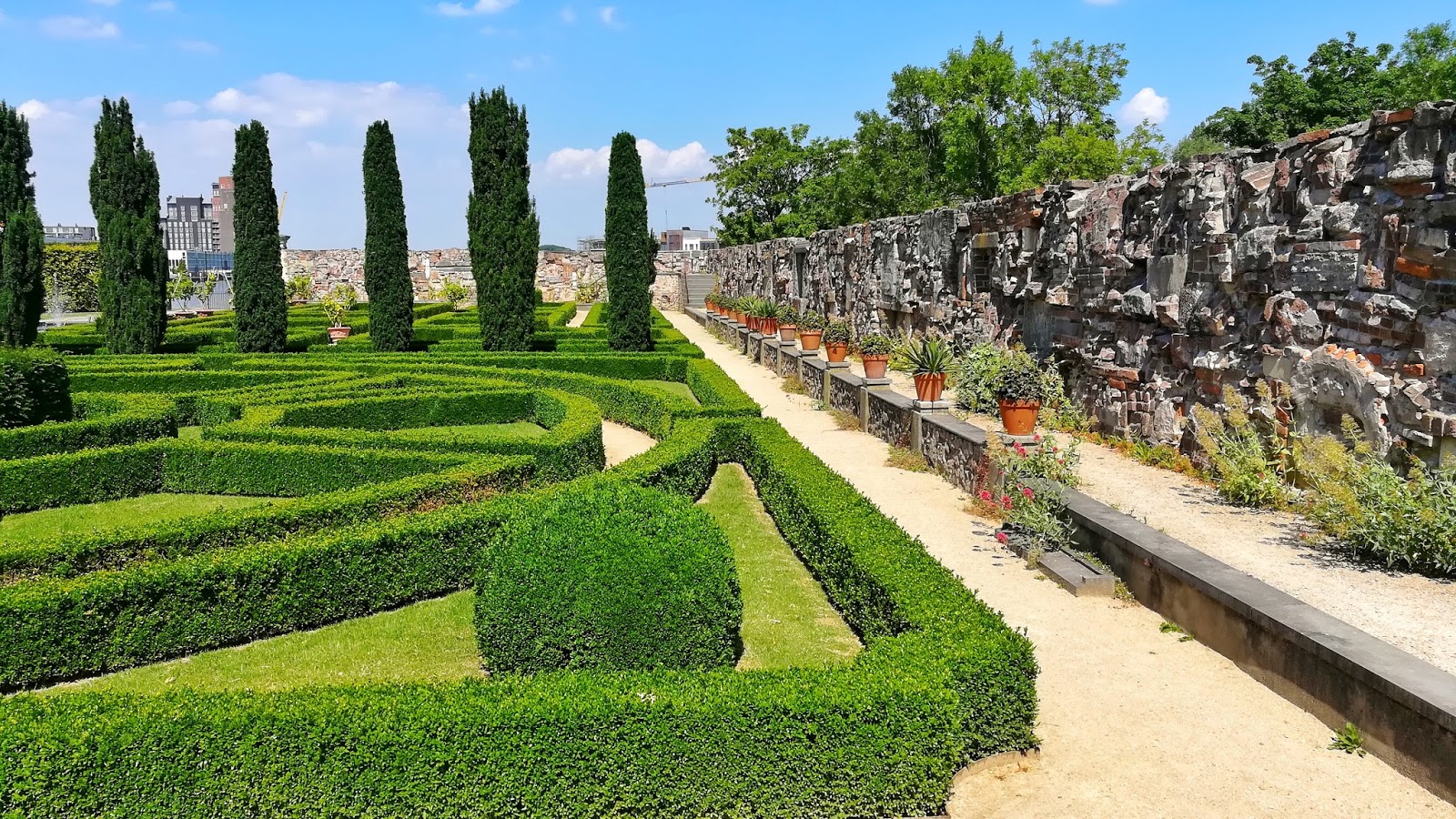 Als schnelle lösung würde ich den abgerutschten teil der mauer ebenfalls herausnehmen und den ganzen abschnitt mit einem ordentlichen fundament neuaufbauen. Es wurden in den vergangenen jahren jedoch maßnahmen ergriffen um den einsturz zu verhindern.