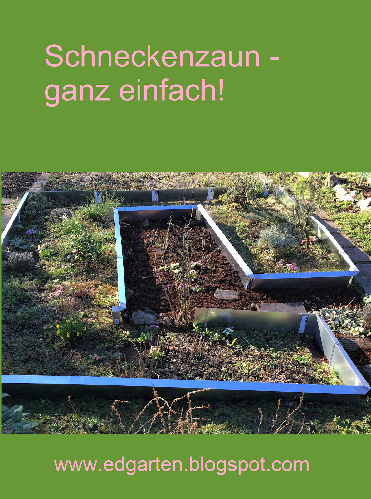 Die schneckenbleche können sie auf ihre individuell gewünschte länge zusammenschieben und so. übrigens dort wo innenecken hinkämen setzte ich aussenecken ein damit die bleche stabil stehen. Schneckenzaun passend für die beetgröße beschaffen. Genügend tief 10 15cm in den boden absenken.