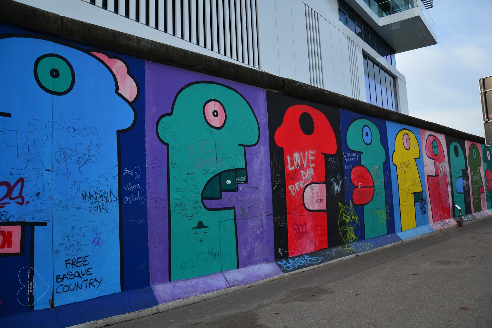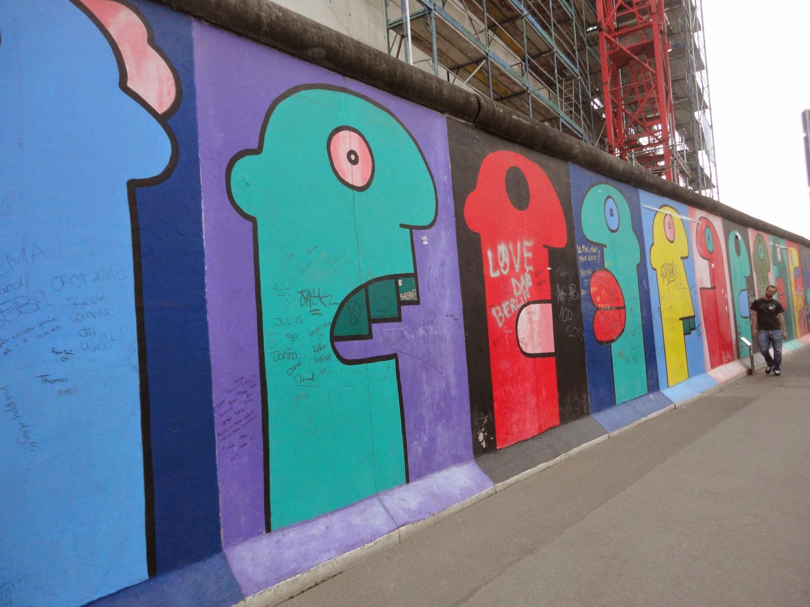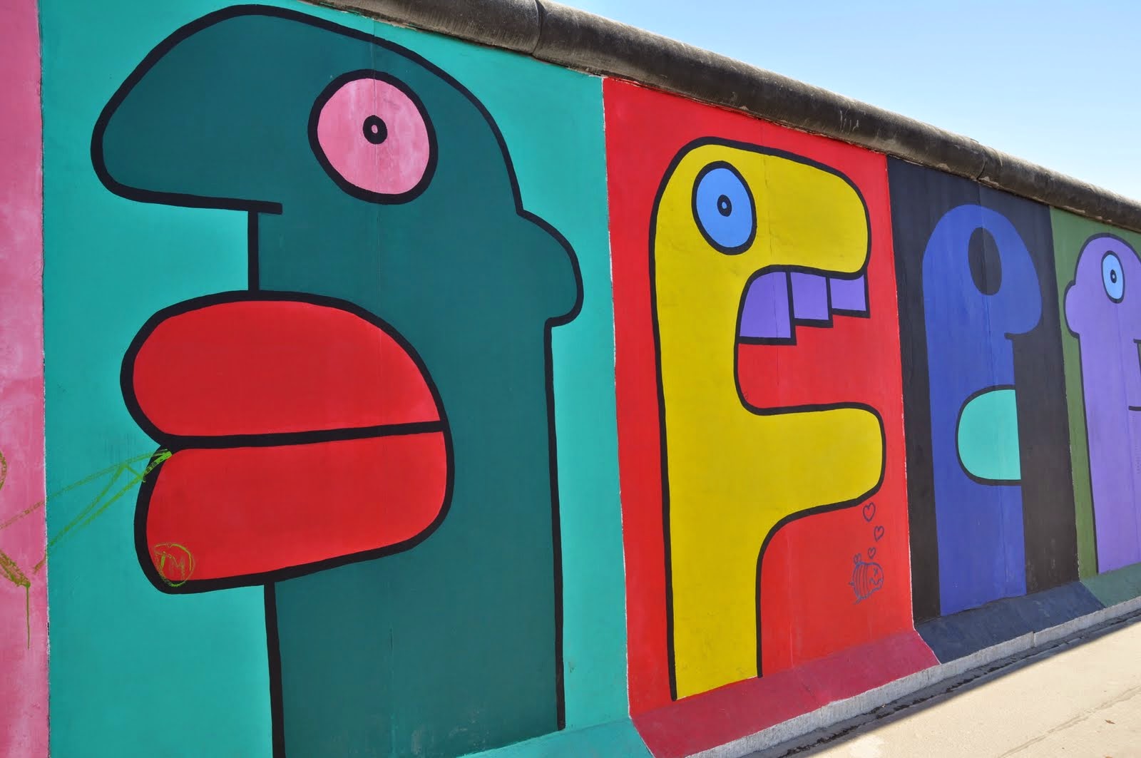 Thierry noir is 44 years old he was born in lyon and arrived in berlin at the beginning of the eighties with two small bags and the insane desire to live in the same town as lou reed and david bowie who a few years earlier had a passion for this new capital of the underground life. Am o2 platz wurde ein stück des denkmalgeschützten bauwerks herausgenommen und hinter die originalmauer. Years after his colorful profile characters became one of the landmark images of the berliner mauer straßenkünstler malerei. While some graffiti artists were chased off the outer strip others such as keith haring were seemingly tolerated.