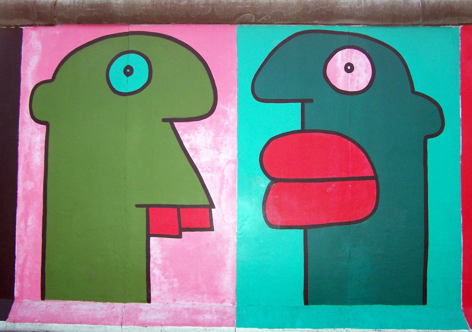 Auf 1 3 km länge steht an der mühlenstraße noch ein orignales teil der berliner mauer. Thierry noir berlin mauer kunst malerei interview mauerfall frankreich lyon paris dekra hochschule andrew hood igor jonas bangs antonin tramitz leonard tramitz dekra. Noir could neither paint nor draw a cat. Als east side gallery wurden 1991 bemalte mauerteile darunter auch das von noir unter denkmalschutz gestellt.