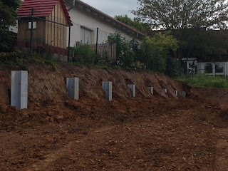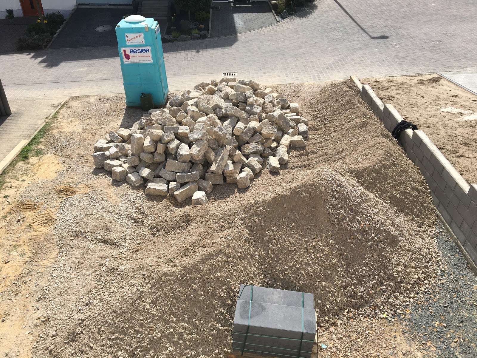 Eine idee war nun dort mit pflanzsteinen eine mauer zu setzen und den rasen einfach zu verlängern.