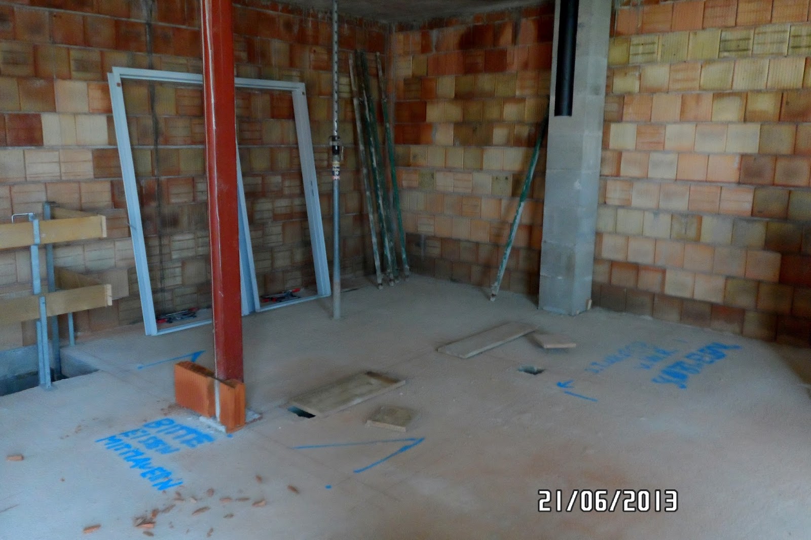 In dem raum in dem wir den mauerdurchbruch gemacht haben ist jetzt natürlich eine tür zuviel. Mauer schneiden wie geht das. Diese will ich verschliessen und habe die alte türzarge schon entfernt. Um die steine genau ausrichten zu können spannen sie die richtschnur bei jeder steinlage der entstehenden geklebten mauer.