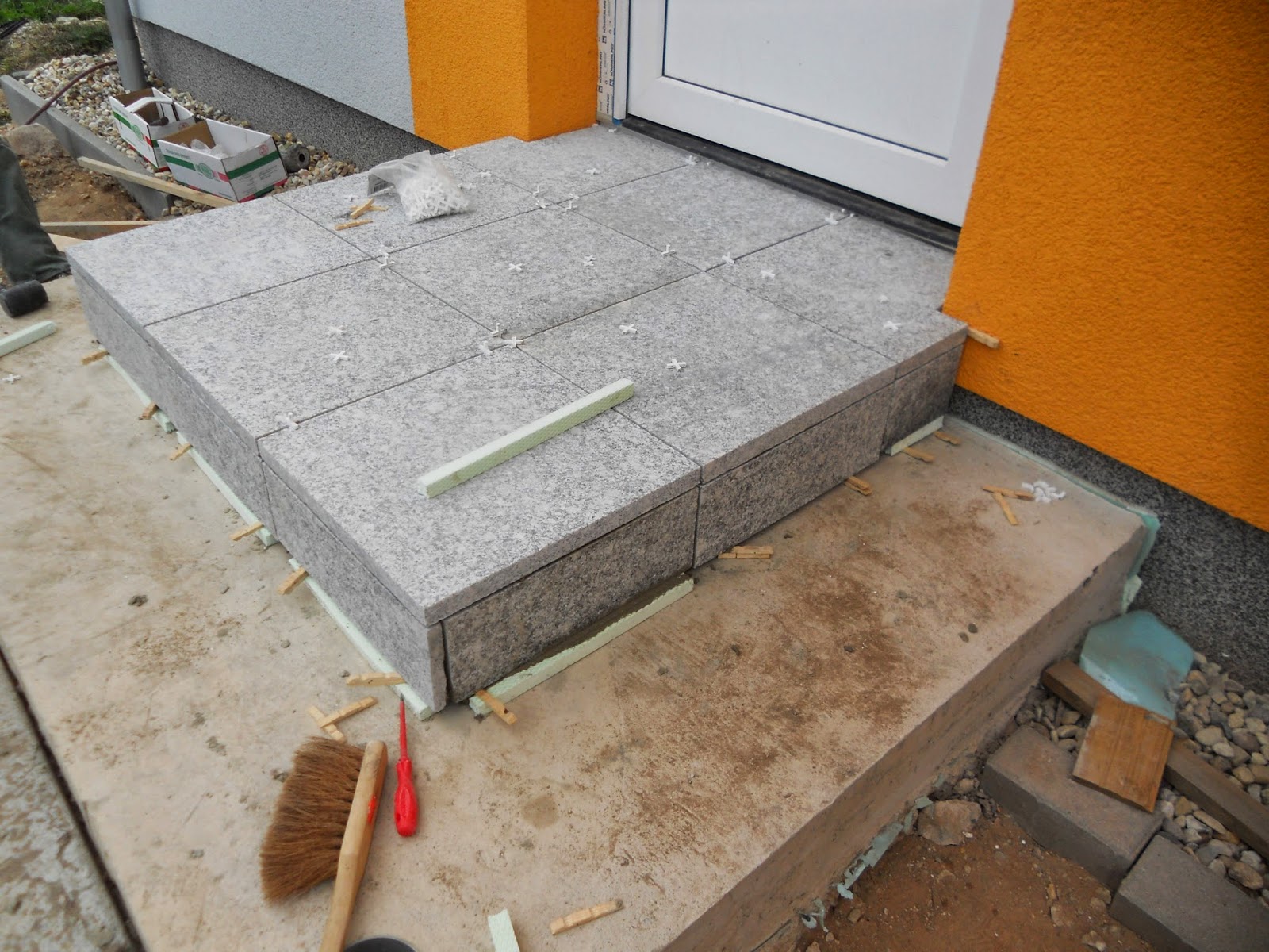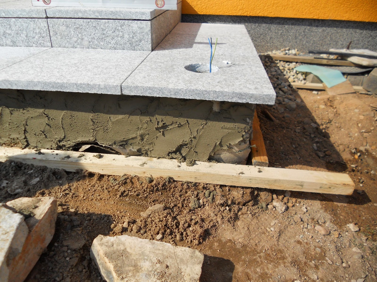 Das befestigen der doppelstabzaunmatten an mauerpfosten aus stein.